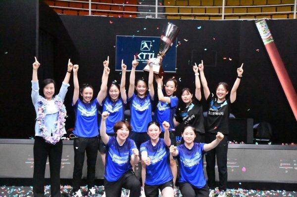 포스코에너지는 ‘무서운 10대’ 김나영(17), 복식 에이스 유한나(20)가 국가대표 전지희(30), 양하은(28) 등과 신구조화를 이루며 KTTL 정규시즌과 챔피언 결정전을 모두 석권했다. 상대가 남녀부 통합우승을 노린 삼성생명이라 기쁨은 두 배였다.
