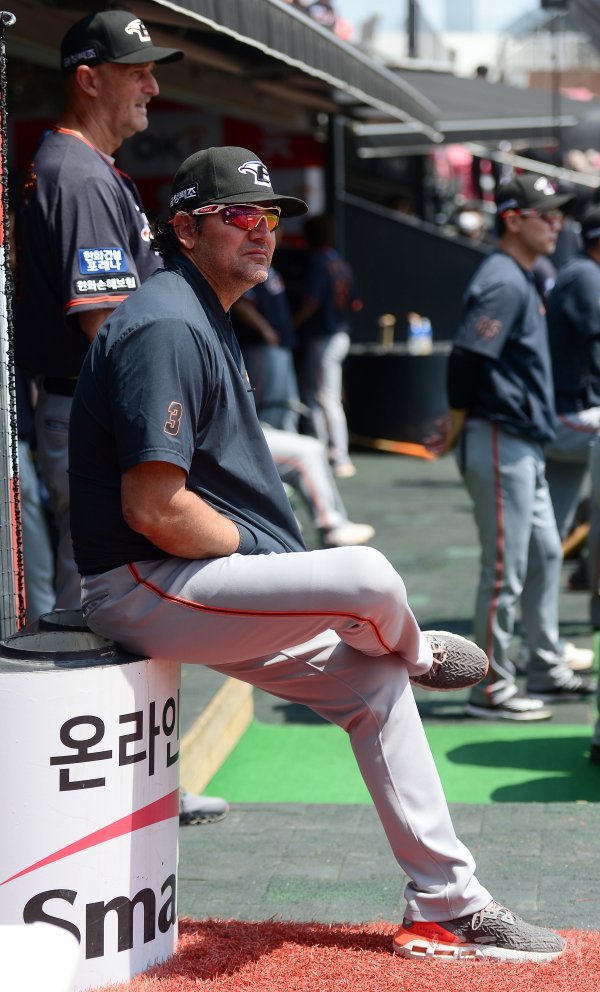 29일 수원KT위즈파크에서 ‘2022 신한은행 MY CAR KBO리그’ 한화 이글스와 KT 위즈 경기가 열렸다. 한화 수베로 감독이 경기를 바라보고 있다.