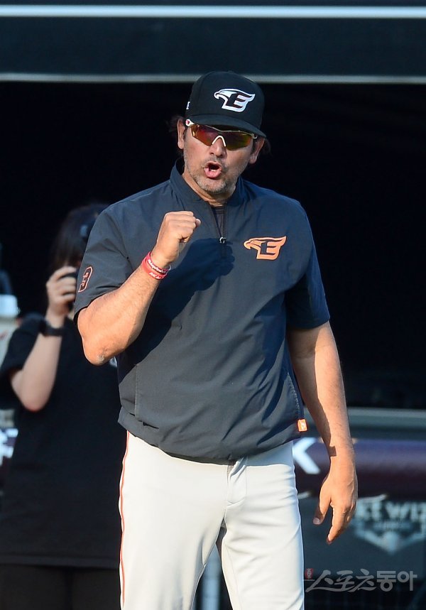 29일 수원KT위즈파크에서 ‘2022 신한은행 MY CAR KBO리그’ 한화 이글스와 KT 위즈 경기가 열렸다. 12-4 대승을 거두며 스윕을 거둔 후 한화 수베로 감독이 기뻐하고 있다.