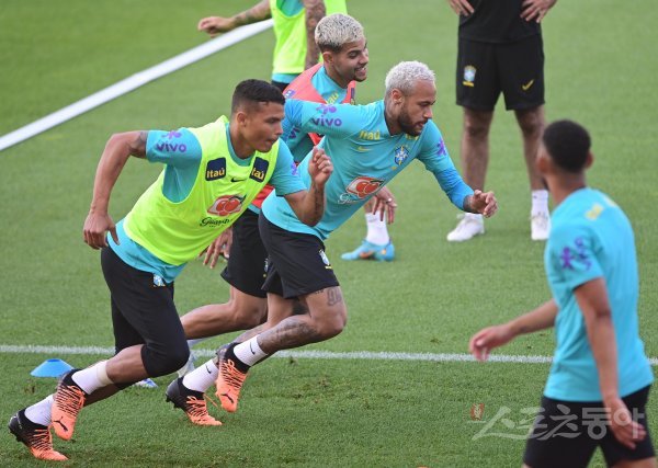 브라질 축구대표팀 네이마르가 29일 경기도 고양종합운동장에서 다음 달 2일 한국과 평가전을 위해 워밍업으로 몸을 풀고 있다.