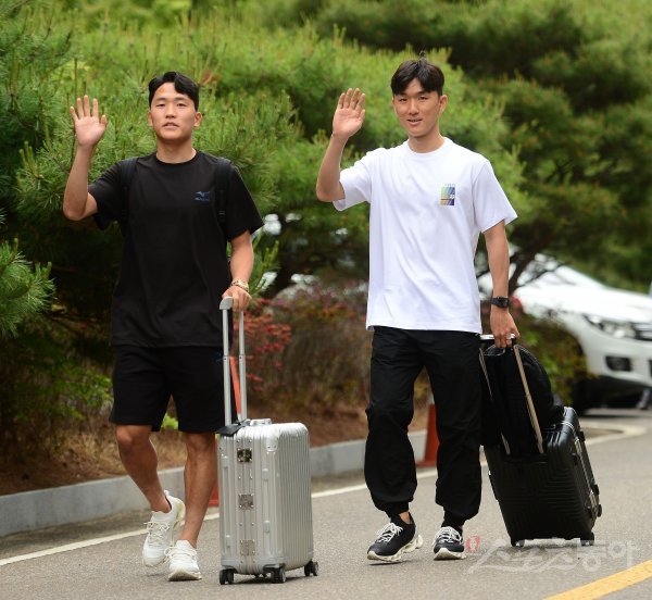 6월 A매치 기간 4차례의 평가전을 앞둔 한국 축구대표팀이 30일 파주국가대표트레이닝센터(NFC)에 소집됐다. 나상호와 황인범이 NFC로 들어오고 있다.