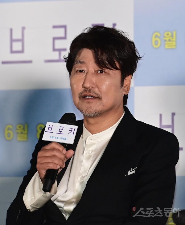 배우 송강호가 31일 서울 용산구 CGV용산아이파크몰점에서 열린 영화 ‘브로커’ 언론시사회에서 인사말을 하고 있다.