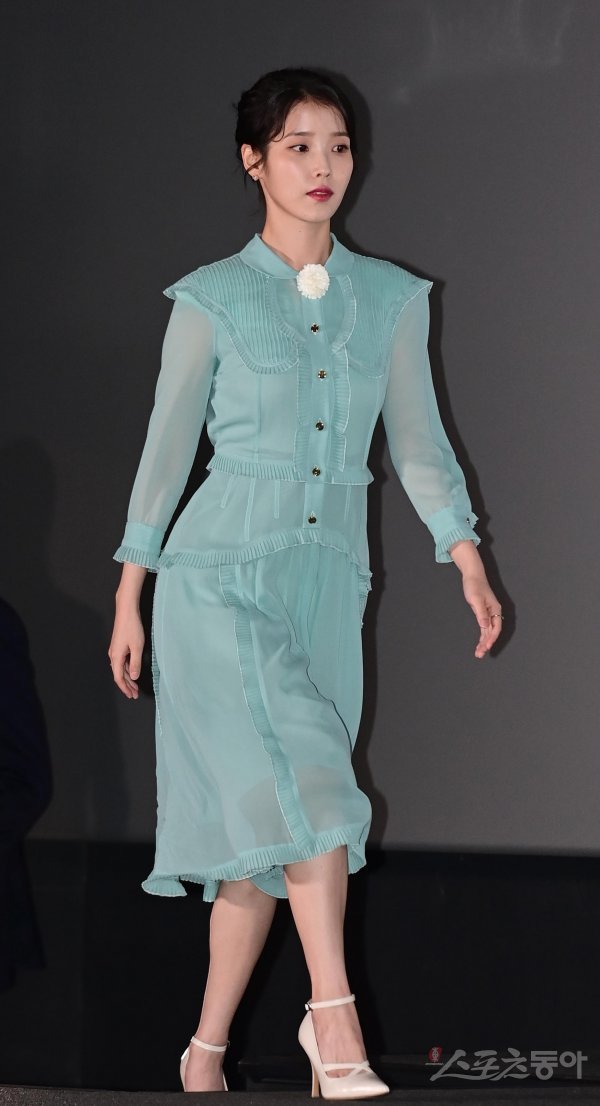 배우 이지은이 31일 서울 용산구 CGV용산아이파크몰점에서 열린 영화 ‘브로커’ 언론시사회 무대에 오르고 있다.