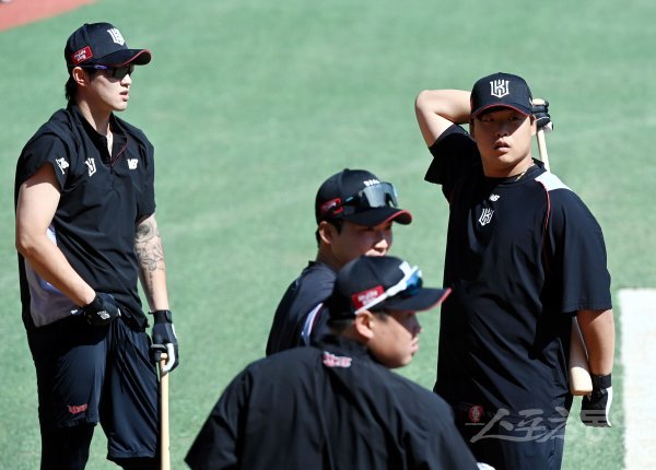 1일 인천 SSG 랜더스필드에서 ‘2022 신한은행 SOL KBO리그’ SSG 랜더스와 kt 위즈의 경기가 열린다. 경기 전 kt 강백호가 1군 복귀에 앞서 훈련을 준비하고 있다.