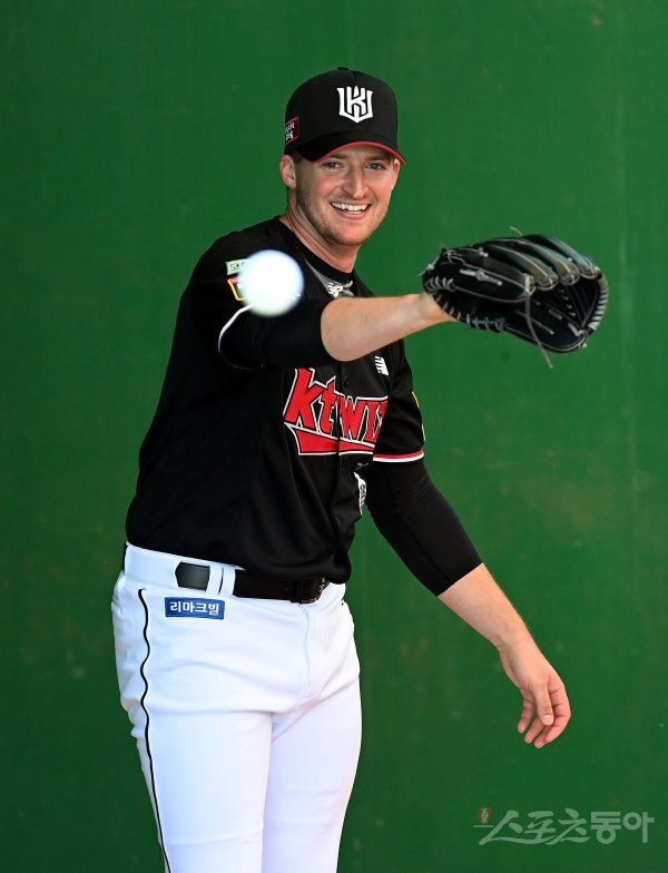 1일 인천 SSG 랜더스필드에서 ‘2022 신한은행 SOL KBO리그’ SSG 랜더스와 kt 위즈의 경기가 열린다. 경기 전 kt 새 용병 투수 벤자민이 불펜 투구를 하고 있다.