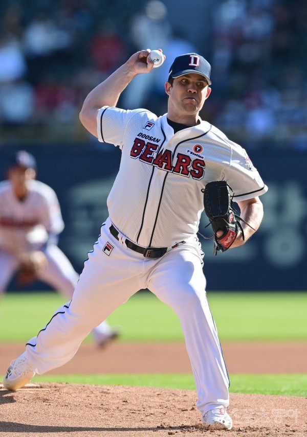 1일 서울 잠실야구장에서 열린 ‘2022 신한은행 SOL KBO리그’ 두산 베어스와 KIA 타이거즈의 경기에서 선발 투수로 마운드에 오른 두산 스탁이 역투하고 있다.