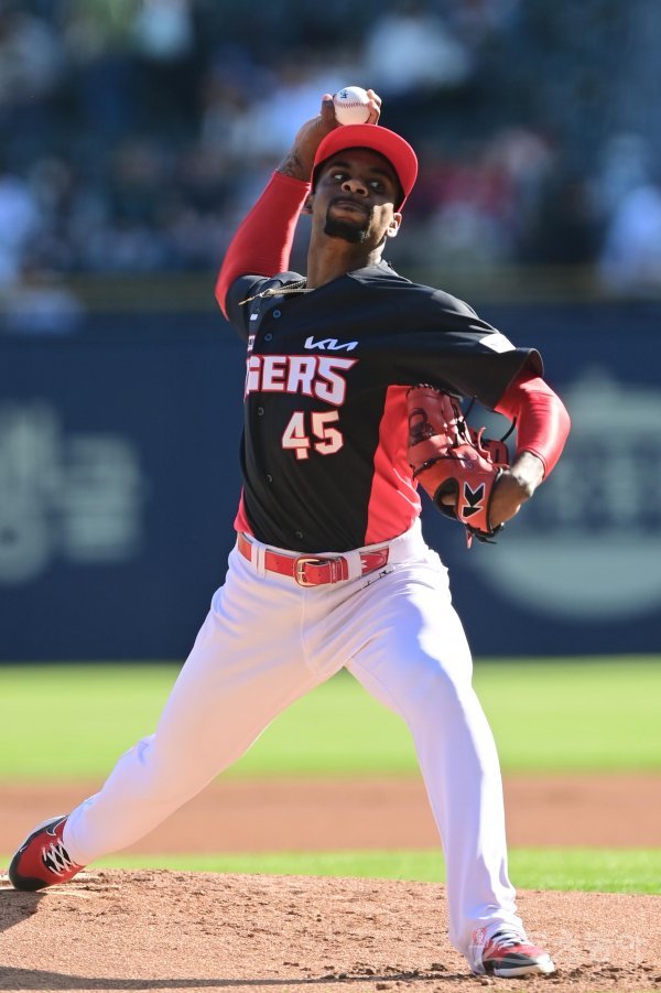 1일 서울 잠실야구장에서 열린 ‘2022 신한은행 SOL KBO리그’ 두산 베어스와 KIA 타이거즈의 경기에서 선발 투수로 마운드에 오른 KIA 로니가 역투하고 있다.