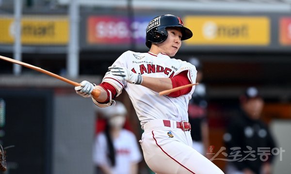1일 인천 SSG 랜더스필드에서 ‘2022 신한은행 SOL KBO리그’ SSG 랜더스와 kt 위즈의 경기가 열렸다. 7회말 2사 2루에서 SSG 대타 박성한이 타격을 펼쳤으나 배트가 부러지고 있다.