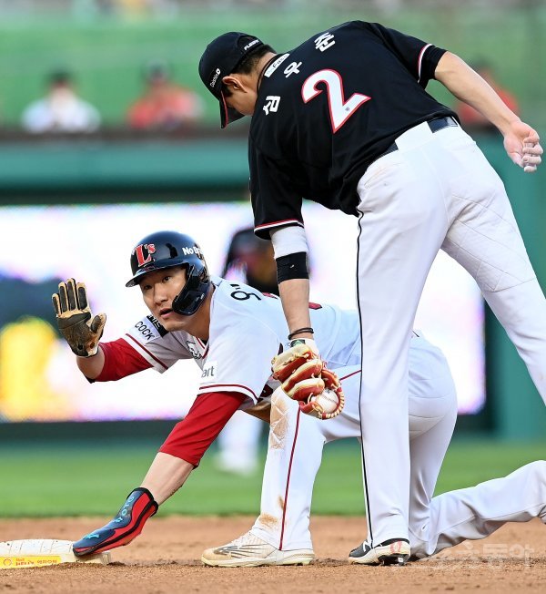 1일 인천 SSG 랜더스필드에서 ‘2022 신한은행 SOL KBO리그’ SSG 랜더스와 kt 위즈의 경기가 열렸다. 7회말 1사 1루에서 SSG 대주자 오태곤이 2루 도루를 성공시키고 있다.
