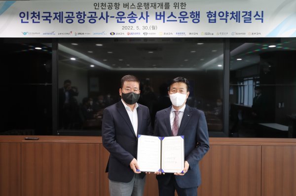 인천국제공항공사(사장 김경욱)는 강원고속 등 인천공항과 지방을 운행하는 버스 운송사와 대중교통 운행 재개를 위한 ‘인천공항 지방버스 운행 협약’을 체결했다.공사, 해당 노선 3개월간 10억 원 규모 특별지원