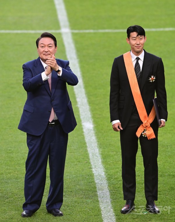 윤 대통령은 직접 서울월드컵경기장을 찾아 손흥민에게 청룡장을 수여했다. 킥오프 1시간 전 진행된 수여식을 위해 손흥민은 정장 차림으로 피치에 들어섰다. 정몽규 대한축구협회장, 월드컵 4강 주역인 안정환 해설위원, 박지성 전북 현대 어드바이저가 자리를 함께했다. 이어 관중의 환호 속에 입장한 윤 대통령은 손흥민의 목에 훈장을 직접 걸어준 뒤 박수를 유도하며 한국인 EPL 득점왕의 탄생을 축하했다.