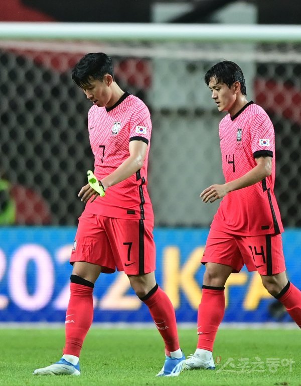 2일 서울월드컵경기장에서 열린 ‘하나은행 초청 축구국가대표팀 친선경기’ 한국과 브라질의 경기에서 전반전 종료 후 한국 손흥민이 고개를 숙인 채 락커룸으로 향하고 있다.