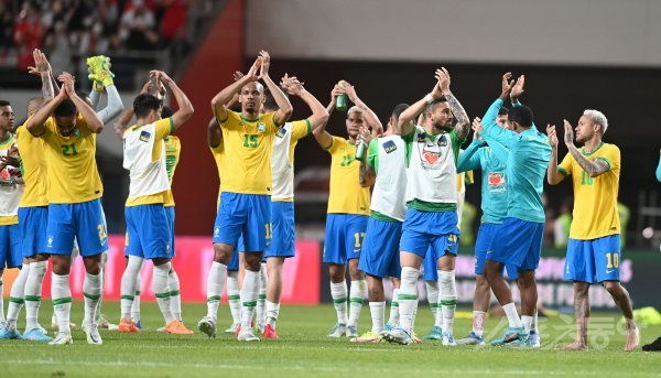 2일 서울월드컵경기장에서 열린 한국축구대표팀과 브라질 경기에서 5-1 승리를 거둔 브라질 선수들이 팬들에게ㅔ 인사하고 있다.