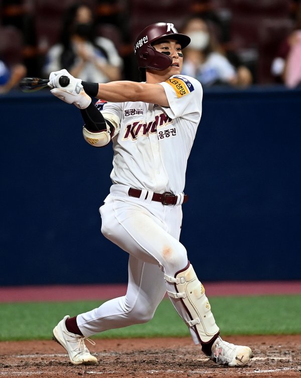 2일 서울 고척스카이돔에서 ‘2022 신한은행 SOL KBO리그’ 키움 히어로즈와 삼성 라이온즈의 경기가 열렸다. 9회말 1사에서 키움 이정후가 안타를 날리고 있다.
