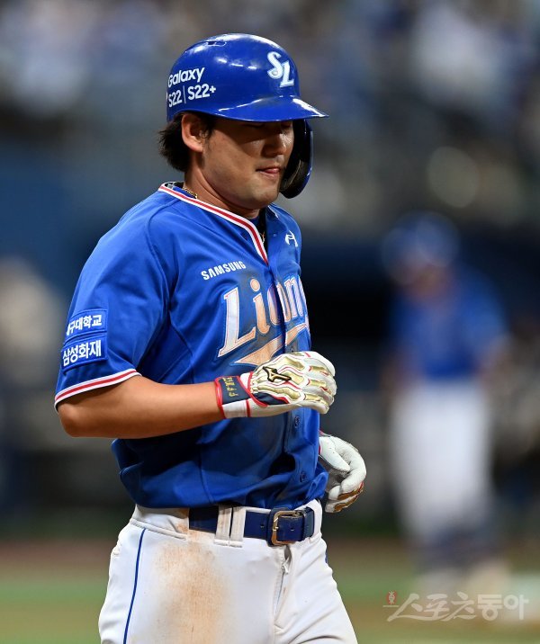 2일 서울 고척스카이돔에서 ‘2022 신한은행 SOL KBO리그’ 키움 히어로즈와 삼성 라이온즈의 경기가 열렸다. 9회초 1사 3루에서 삼성 김상수가 내야땅볼 타구를 날린 후 아쉬워하고 있다.