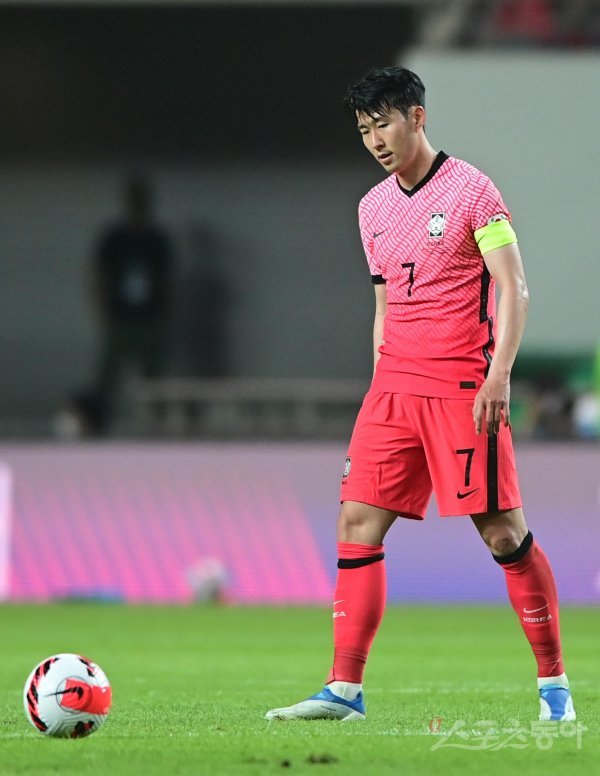 2일 서울월드컵경기장에서 열린 ‘하나은행 초청 축구국가대표팀 친선경기’ 한국과 브라질의 경기에서 한국 손흥민이 브라질의 다섯 번째 골에 아쉬워하고 있다.
