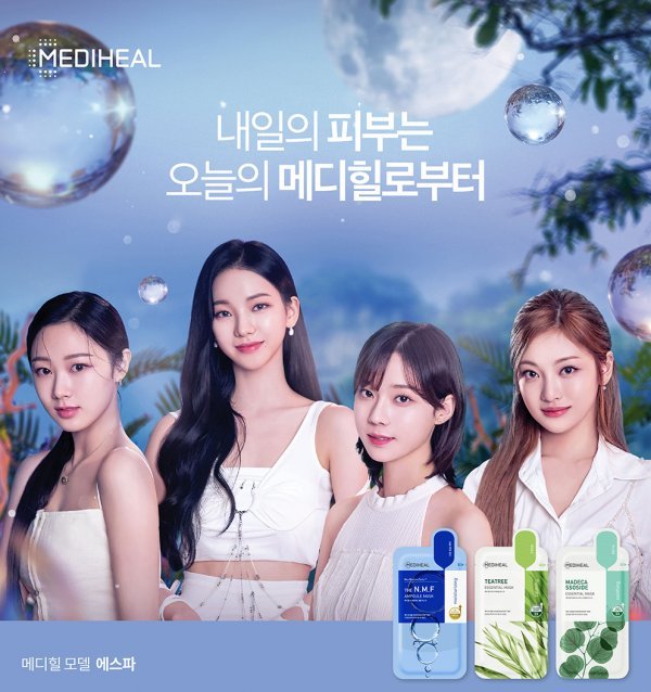 엘앤피코스메틱이 코로나19 사회적 거리두기와 실외 마스크 착용 의무 해제 효과로 연신 미소 짓고 있다. 메디힐 모델 에스파와 리뉴얼 출시한 마스크팩 제품. 사진제공 | 엘앤피코스메틱