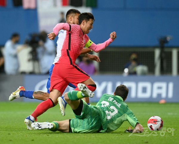 6일 대전월드컵경기장에서 열린 한국축구대표팀과 칠레의 평가전에서 한국 손흥민이 칠레의 수비를 뚫고 공격하고 있다.