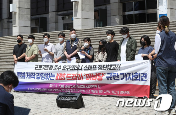 앞서 이날 오전, 서울 여의도 KBS 본관 앞에선 불법 제작을 강행하는 '미남당' 규탄 기자회견이 진행됐다.