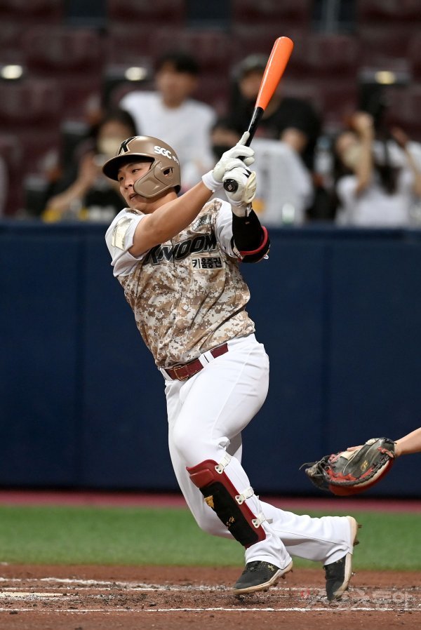 7일 서울 고척스카이돔에서 ‘2022 신한은행 MY CAR KBO리그’ KT 위즈와 키움 히어로즈 경기가 열렸다. 2회말 1사 1루 키움 김수환이 좌전 안타를 치고 있다.