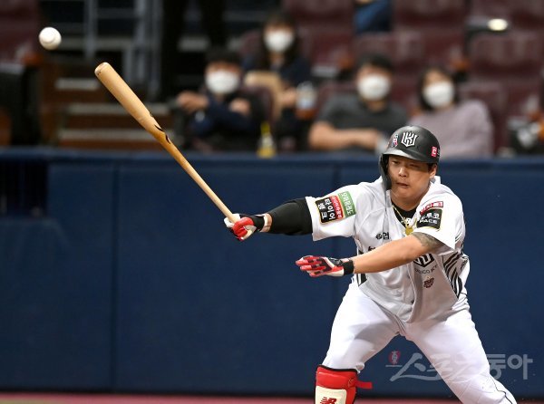 7일 서울 고척스카이돔에서 ‘2022 신한은행 MY CAR KBO리그’ KT 위즈와 키움 히어로즈 경기가 열렸다. 1회초 1사 2루 KT 강백호가 내야 땅볼을 치고 있다.