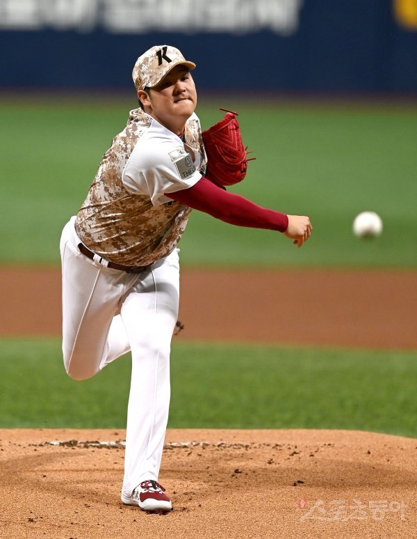 7일 서울 고척스카이돔에서 ‘2022 신한은행 MY CAR KBO리그’ KT 위즈와 키움 히어로즈 경기가 열렸다. 선발 투수로 등판한 키움 한현희가 역투하고 있다.