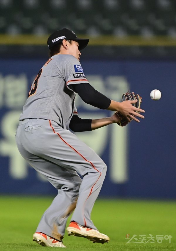 7일 서울 잠실야구장에서 열린 ‘2022 신한은행 SOL KBO리그’ 두산 베어스와 한화 이글스의 경기에서 5회말 무사 1루 두산의 뜬공 타구를 한화 2루수 정은원이 놓치고 있다.