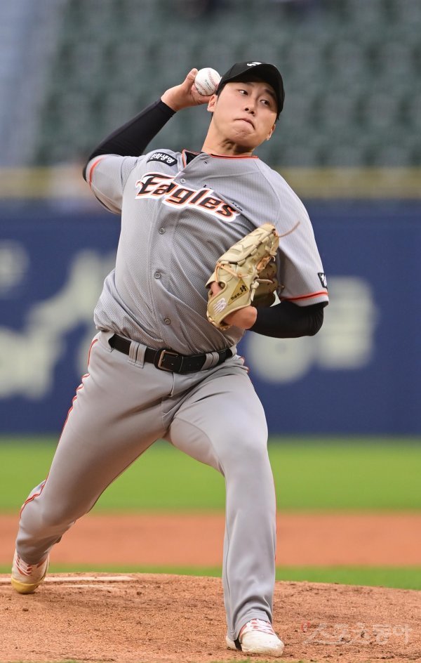 7일 서울 잠실야구장에서 열린 ‘2022 신한은행 SOL KBO리그’ 두산 베어스와 한화 이글스의 경기에서 선발 투수로 마운드에 오른 한화 남지민이 역투하고 있다.