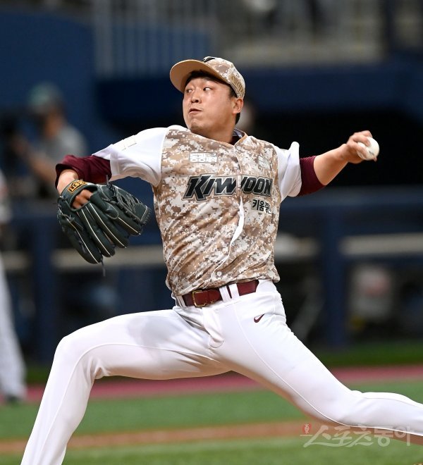 7일 서울 고척스카이돔에서 ‘2022 신한은행 MY CAR KBO리그’ KT 위즈와 키움 히어로즈 경기가 열렸다. 9회초 등판해 1이닝을 무실점으로 막으며 7세이브를 기록한 키움 이승호가 역투하고 있다.
