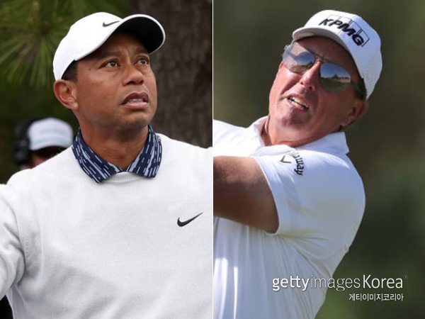 타이거 우즈(왼쪽), 필 미켈슨. 사진=게티이미지코리아