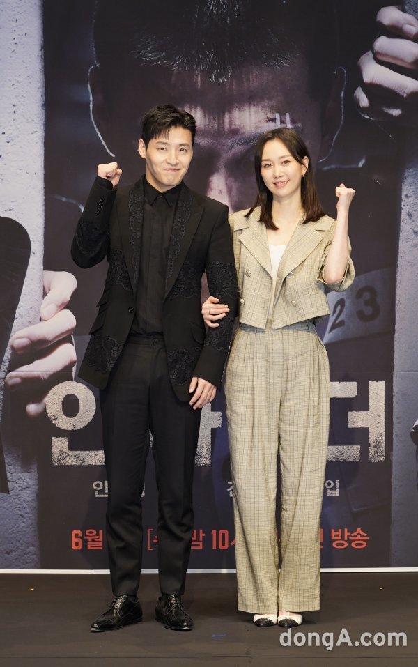 강하늘, 이유영이 8일(수) 오후 2시 온라인으로 진행된 JTBC 새 수목드라마 ‘인사이더’ 제작발표회에서 포즈를 취하고 있다.