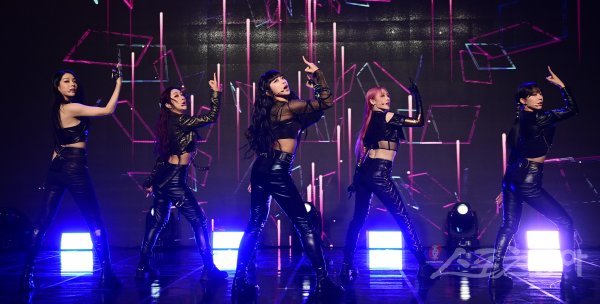그룹 시크릿넘버가 8일 서울 강남구 청담동 일지아트홀에서 열린 네 번째 싱글 앨범 ‘DOOMCHITA‘ 발매 기념 미디어 쇼케이스에서 타이틀곡 ’둠치타‘ 무대를 펼치고 있다.