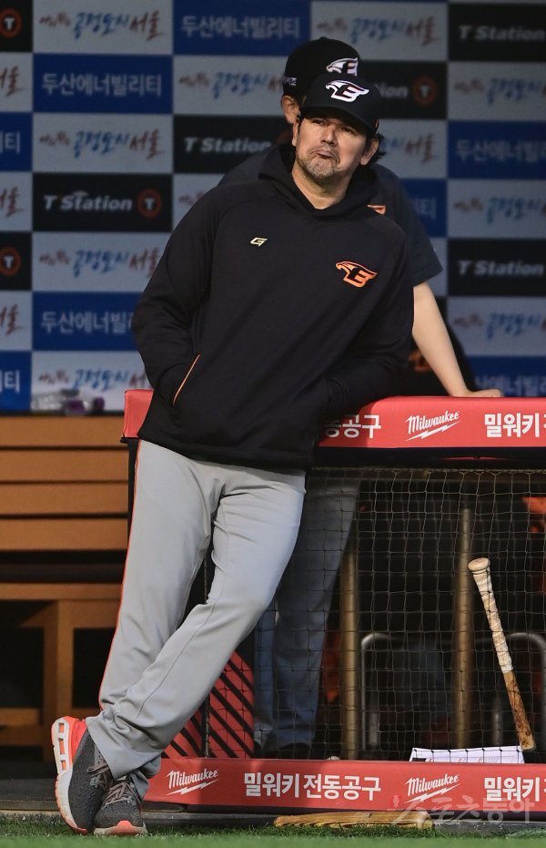8일 서울 잠실야구장에서 열린 ‘2022 신한은행 SOL KBO리그’ 두산 베어스와 한화 이글스의 경기에서 5회초 공격이 무산된 뒤 한화 수베로 감독이 아쉬워하고 있다.