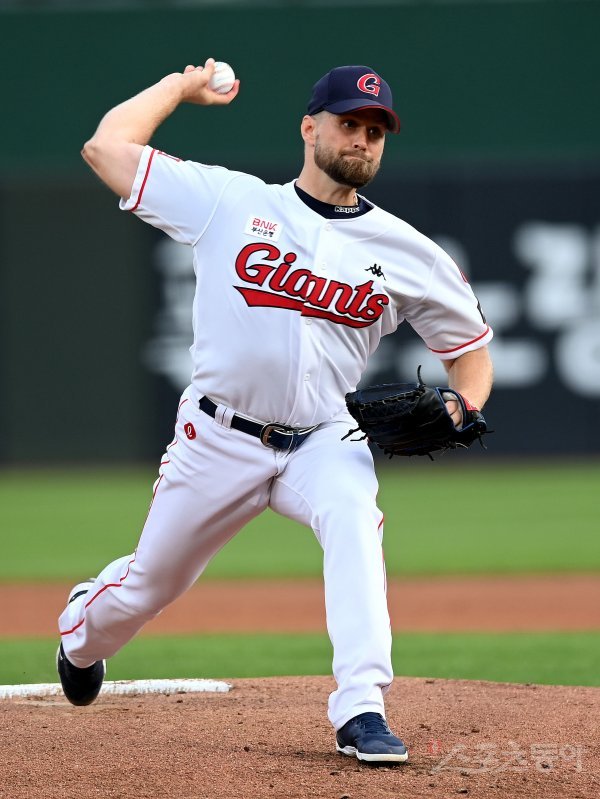 9일 부산 사직야구장에서 ‘2022 신한은행 SOL KBO리그’ 롯데 자이언츠와 삼성 라이온즈의 경기가 열렸다. 롯데 선발투수 스파크맨이 힘차게 볼을 던지고 있다.