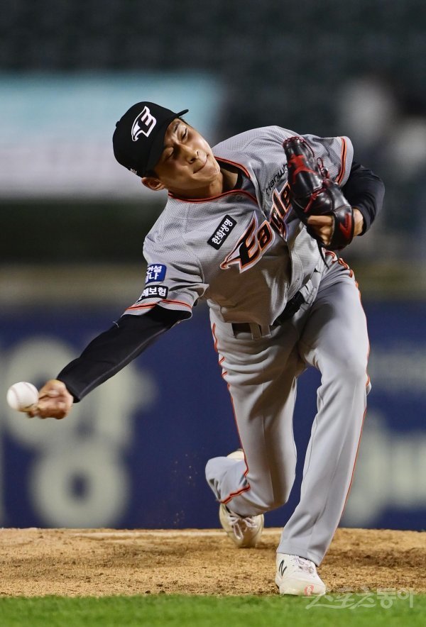 9일 서울 잠실야구장에서 열린 ‘2022 신한은행 SOL KBO리그’ 두산 베어스와 한화 이글스의 경기에서 4회말 한화 이재민이 교체로 마운드에 올라 역투하고 있다.