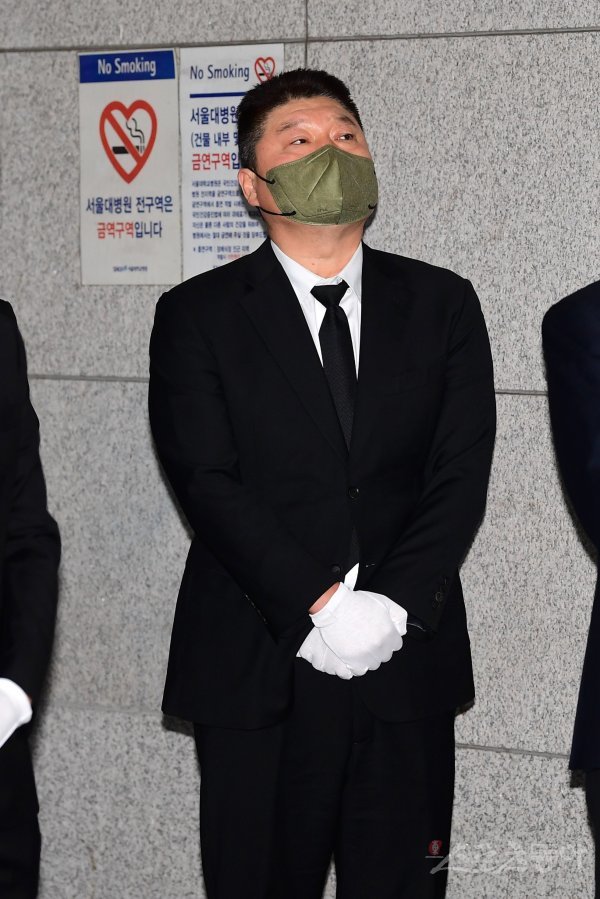 KBS 장수 프로그램 ‘전국노래자랑’의 현역 최고령 진행자 고 송해의 발인이 10일 서울 종로구 연건동 서울대학교병원 장례식장에서 엄수됐다. 방송인 강호동이 슬픔에 잠겨있다.