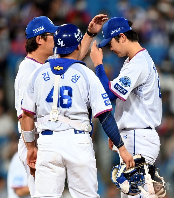 10일 대구 삼성라이온즈파크에서 ‘2022 신한은행 SOL KBO리그’ 삼성 라이온즈와 NC 다이노스의 경기가 열렸다. 4회초 2사 만루에서 삼성 선발 황동재가 교체되고 있다.
