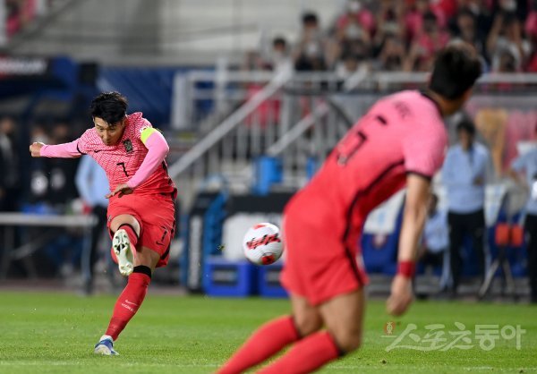 10일 수원월드컵경기장에서 열린 한국축구대표팀과 파라과이의 평가전에서 한국 손흥민이 프리킥 골을 성공시키고 있다.