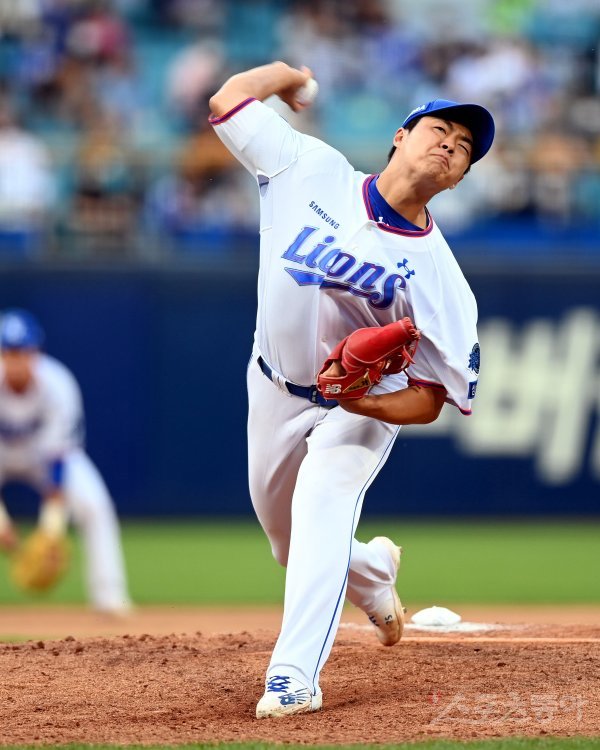11일 대구 삼성라이온즈파크에서 ‘2022 신한은행 SOL KBO리그’ 삼성 라이온즈와 NC 다이노스의 경기가 열렸다. 8회초 삼성 김윤수가 구원 등판해 볼을 던지고 있다.
