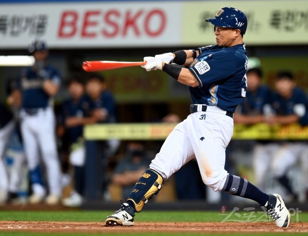 11일 대구 삼성라이온즈파크에서 ‘2022 신한은행 SOL KBO리그’ 삼성 라이온즈와 NC 다이노스의 경기가 열렸다. 연장 11회초 1사 1, 3루에서 NC 손아섭이 2타점 3루타를 날리고 있다.