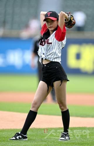 12일 서울 잠실야구장에서 ‘2022 신한은행 MY CAR KBO리그’ 두산 베어스와 LG 트윈스 경기가 열렸다. 경기 전 가수 장혜리가 시구를 하고 있다.