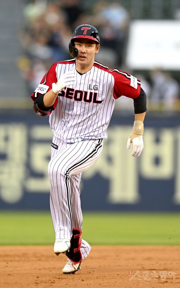 12일 서울 잠실야구장에서 ‘2022 신한은행 MY CAR KBO리그’ 두산 베어스와 LG 트윈스 경기가 열렸다. 5회말 1사 1,2루 LG 홍창기가 역전 2타점 중전를 치고 3루까지 달리고 있다.