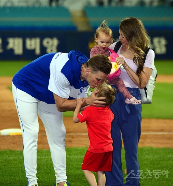 12일 대구 삼성라이온즈파크에서 ‘2022 신한은행 SOL KBO리그’ 삼성 라이온즈와 NC 다이노스의 경기가 열렸다. 삼성이 NC를 상대로 4-2로 승리한 뒤 뷰캐넌이 가족과 함께 즐거운 시간을 보내고 있다.