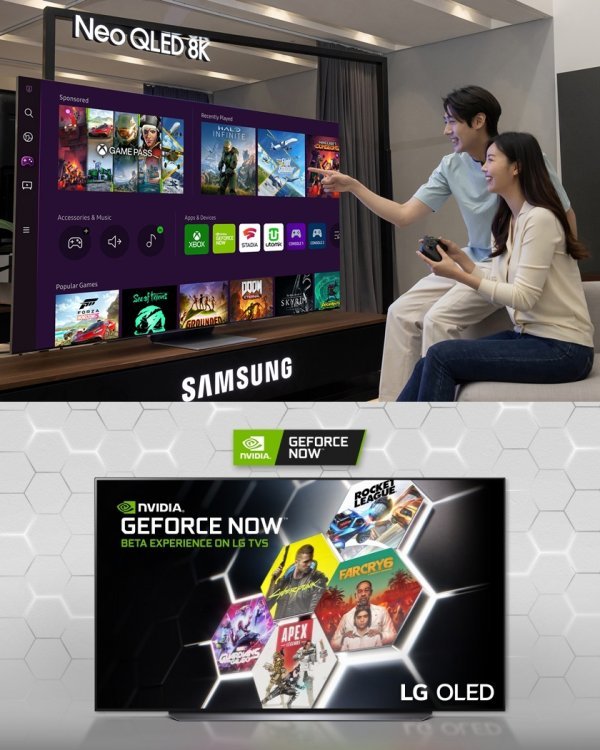 세계 TV 시장을 놓고 삼성전자와 경쟁하고 있는 LG전자도 TV 콘텐츠 확보에 힘을 쏟고 있다. 독자 소프트웨어 플랫폼 ‘웹OS’ 기반의 스마트 TV로, 다양한 콘텐츠를 제공하고 있다. 그 중에는 지포스 나우와 스타디아 등 클라우드 게임 서비스도 포함돼 있다. LG전자는 이 밖에도 세계 최소 올레드 TV인 42인치 ‘올레드 에보’(42C2)를 선보이고, 부산 광안리에서 금성 오락실을 운영하는 등 TV로 게임을 즐기려는 유저들을 위한 마케팅에도 공을 들이고 있다.