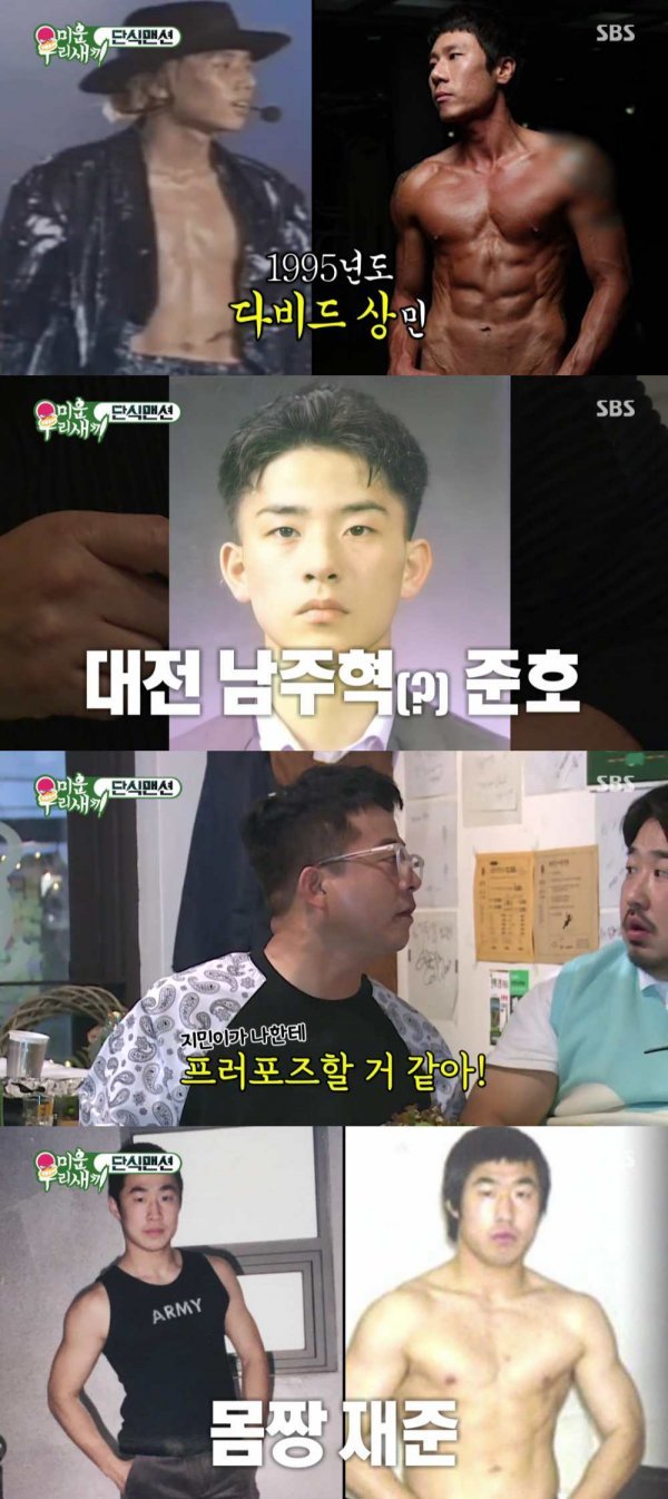 한편, 이날 ‘미운우리새끼’에서는 이상민, 김준호, 강재준이 단식원에 입소하는 이야기가 그려졌다. 단식원 입소 전날, 삼겹살 회식을 하며 ‘리즈 시절’을 떠올린 세 사람. 김준호는 과거 사진을 공개하며 “살이 빠지면 지민이의 마음을 사로잡을 것 같다. 나한테 프러포즈할 것 같다”고 너스레를 떨었다.