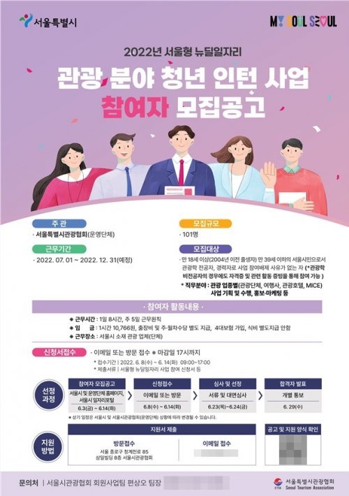 서울시관광협회는 서울시와 함께 관광업계의 빠른 회복지원과 서울 관광업계 인력난 해소를 위해 ‘2022 서울형 뉴딜일자리 관광분야 청년 인턴사업’을 추진한다. 전문관광인 현장실무 경험 및 채용, 직무교육 지원