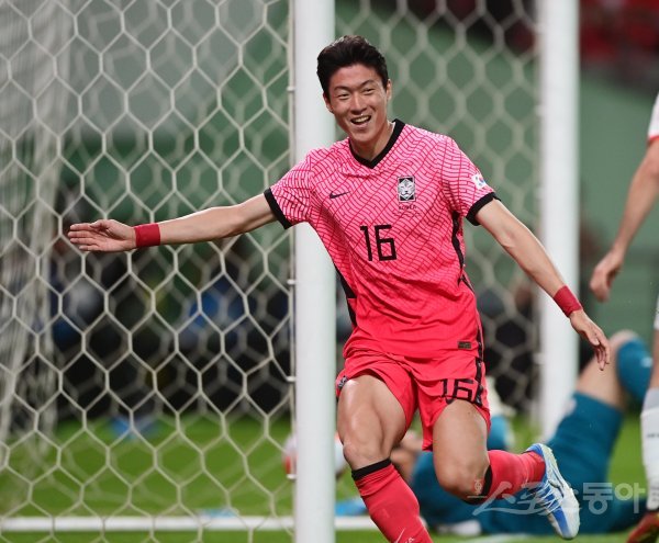 14일 서울월드컵경기장에서 열린 ‘하나은행 초청 축구국가대표팀 친선경기’ 한국과 이집트의 경기에서 한국 황의조가 선제골을 성공시킨 후 세리머니를 하고 있다.