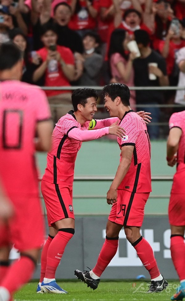 14일 서울월드컵경기장에서 열린 ‘하나은행 초청 축구국가대표팀 친선경기’ 한국과 이집트의 경기에서 한국 김영권이 추가골을 성공시킨 후 손흥민과 기쁨을 나누고 있다.