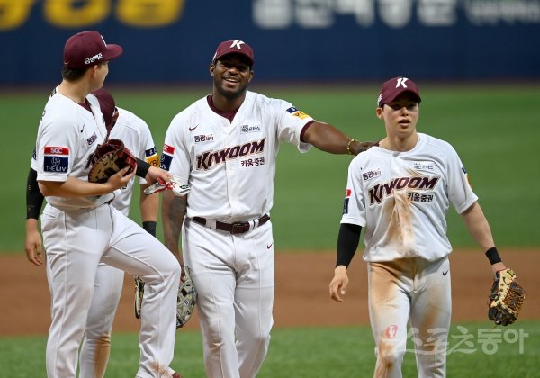 14일 서울 고척스카이돔에서 ‘2022 신한은행 MY CAR KBO리그’ 두산 베어스와 키움 히어로즈 경기가 열렸다. 2-0 승릴르 거둔 후 키움 푸이그가 웃고 있다.