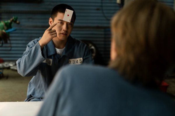 테이블 밖, 번외 게임을 펼치는 김요한과 장선오 모습도 시선을 끈다. 카드 한 장씩을 이마에 나눠 붙인 두 사람. 이들이 볼 수 있는 것은 오직 상대의 행동, 그리고 그의 카드뿐이다. 어느새 웃는 낯을 꺼내보인 장선오 표정은 김요한의 진중한 모습과 대비되며 묘한 긴장감을 더한다. 과연 이들의 게임에 걸린 대가는 무엇일지, 둘 중 승자는 누구일지 이목이 집중된다.